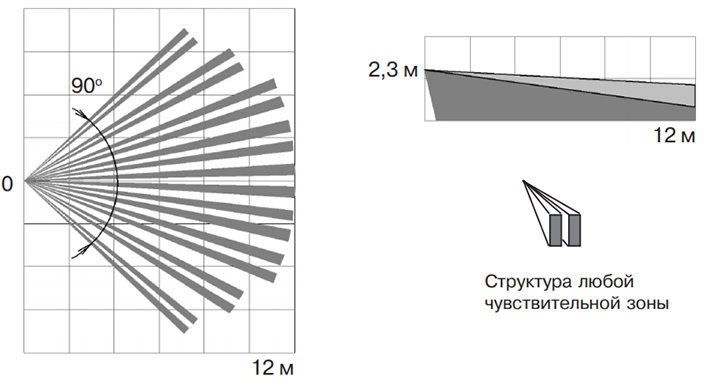 | Угол зоны (Охранные датчики) | 90° объемная |