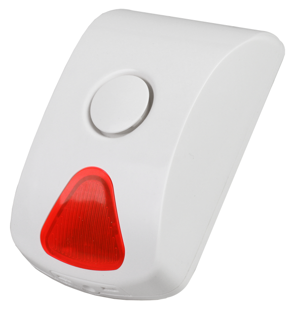 Оповещатель мигающим красным светом и звуком сирены информирует окружающих о произошедшем тревожном событии.
