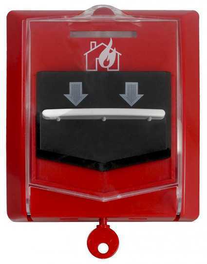 Извещатель срабатывает при нажатии на кнопку с усилием не менее 1,5 кг. После снятия усилия извещатель остается во включенном состоянии. Кнопка находится под защитной крышкой, которая может быть опломбирована.